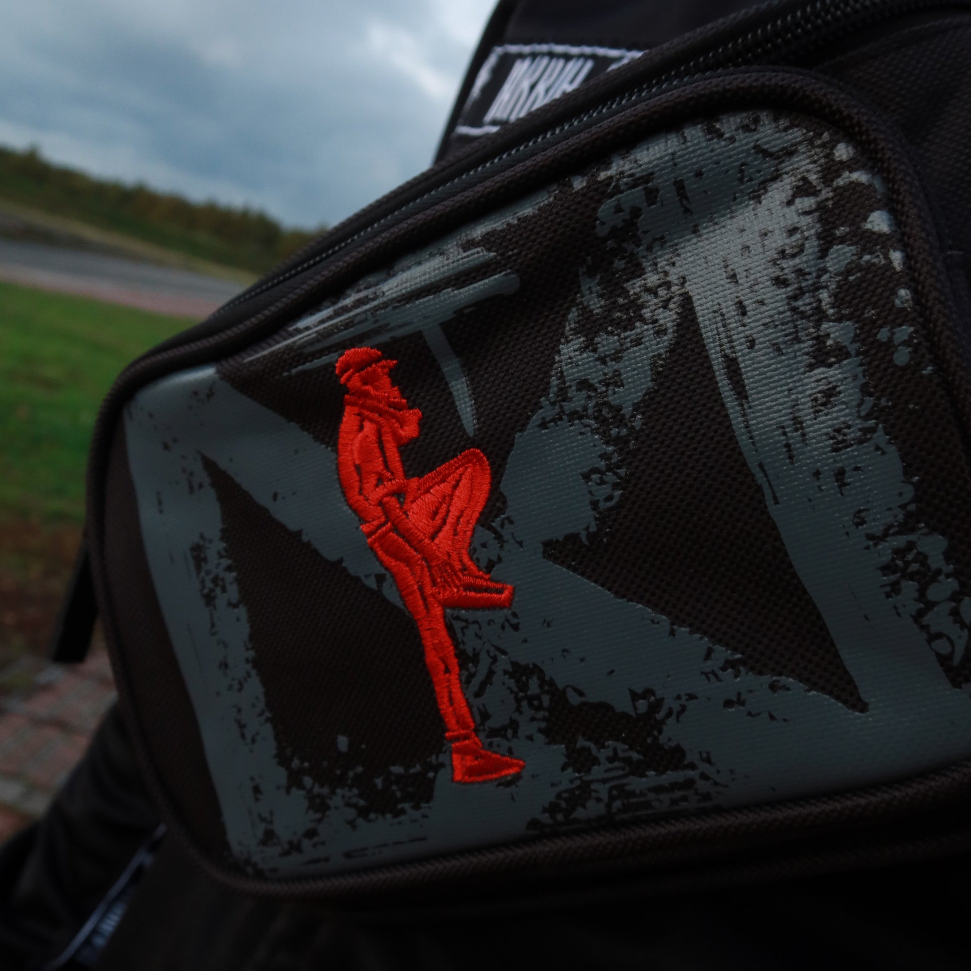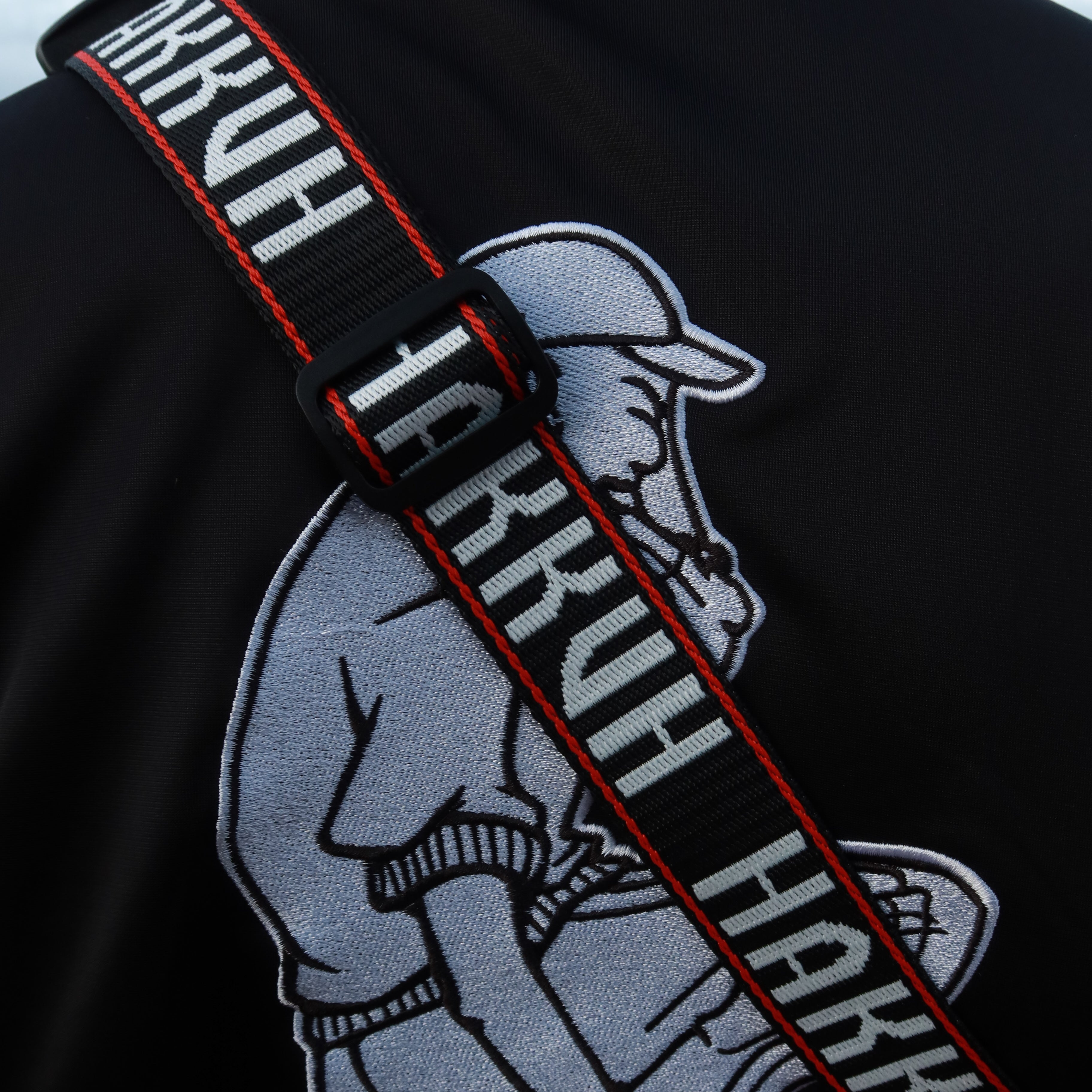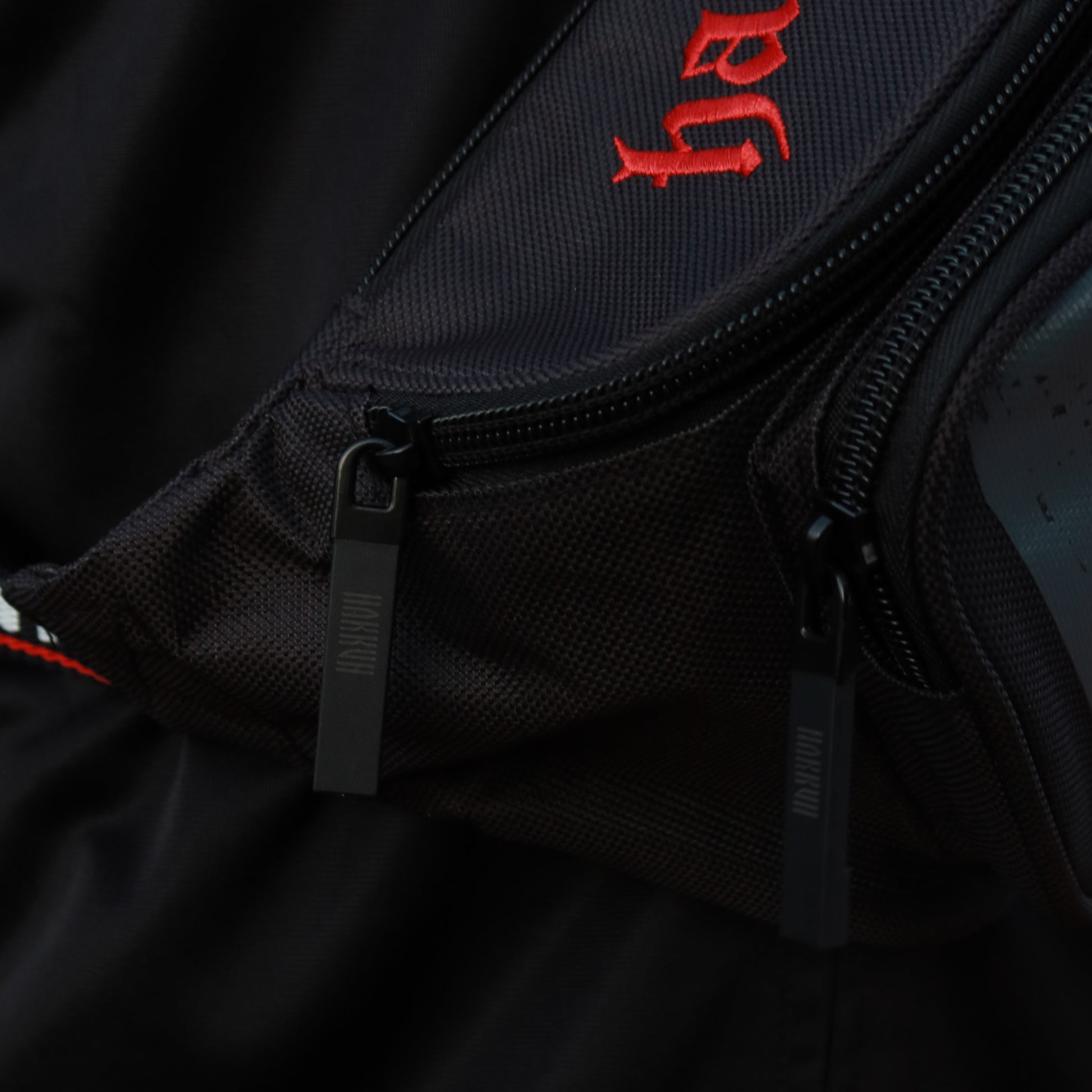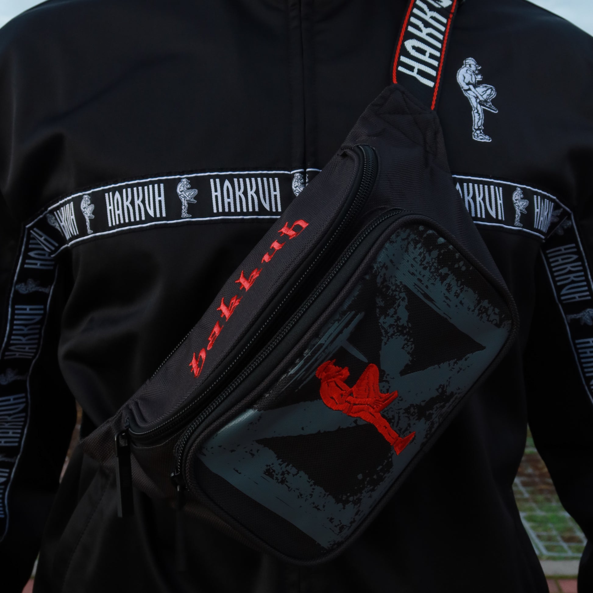 Bold red embroidery and an exclusive graphic print make this hip bag more than storage, it’s a style signature. Stand out in the crowd with striking details and premium finishing that reflect festival culture and streetwear edge.
